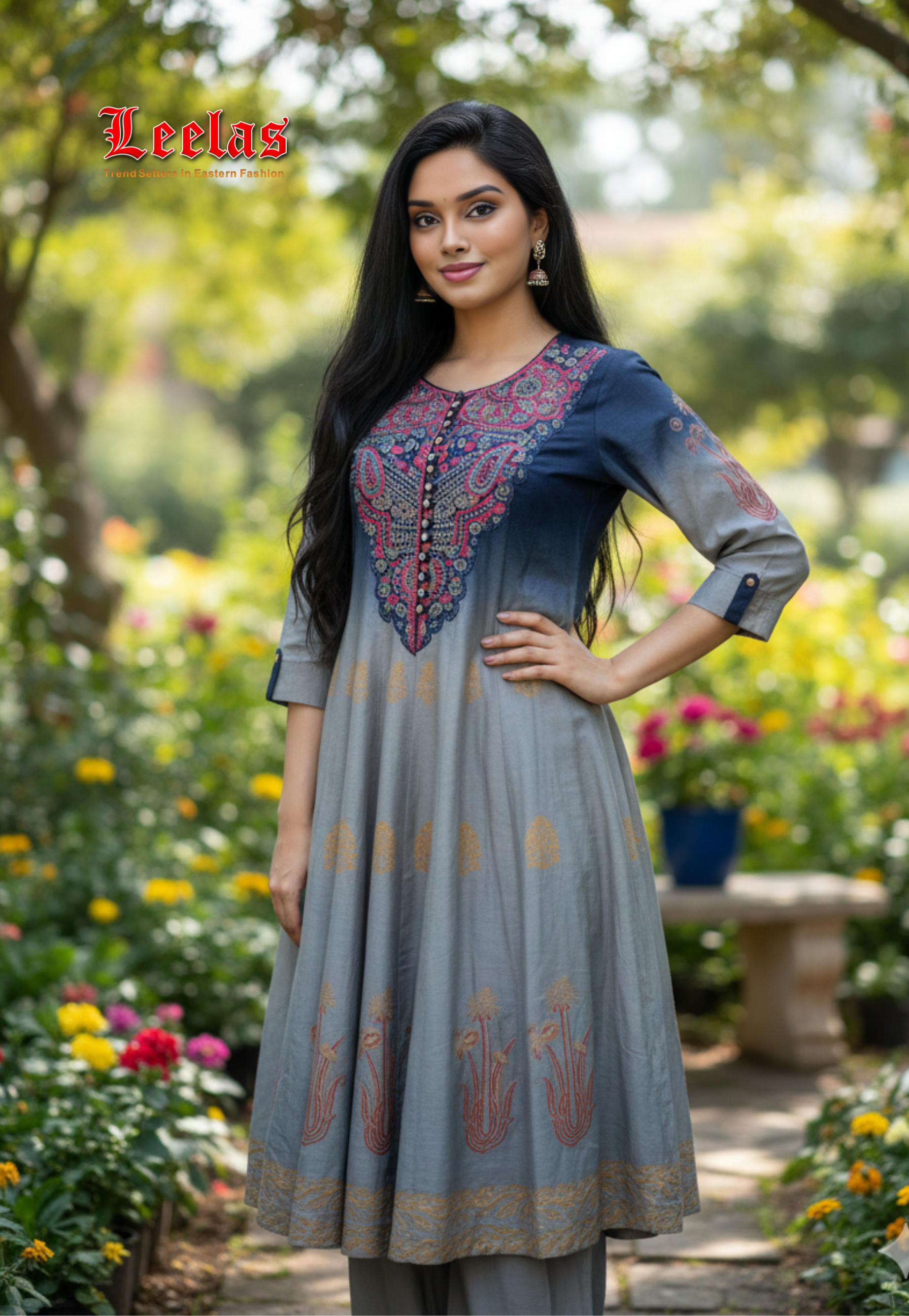 Grey and navy silk kurti set